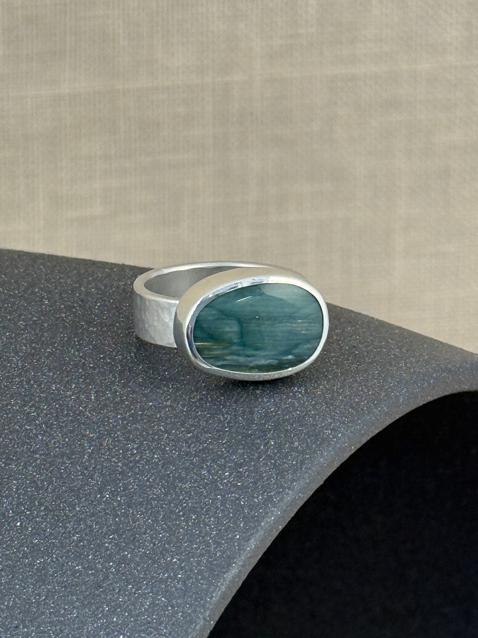 Small Horizontal Gary Green Jasper Ring #1